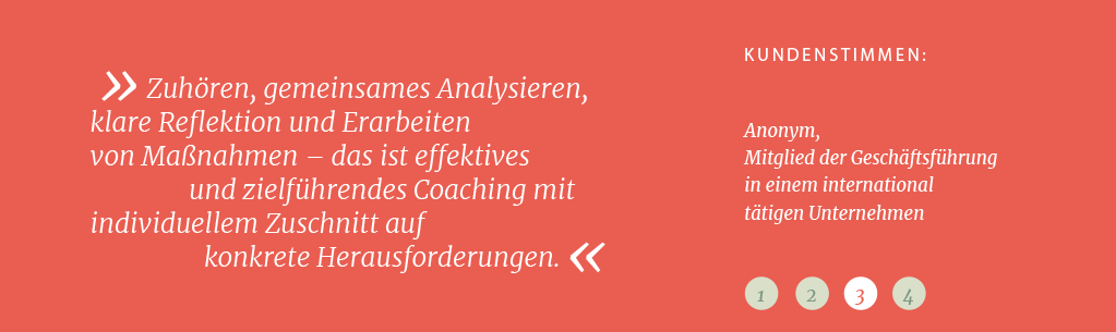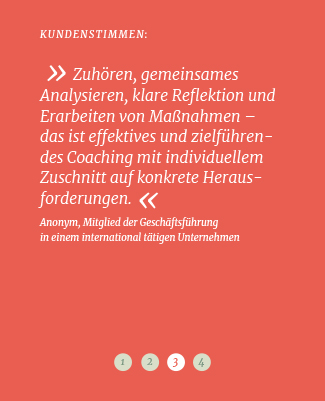 Qualität in der Beratung ist eine Frage der Standards. Ich gehöre zwei maßgeblichen Dachverbänden der Branche an und nutze laufend Supervision zur Qualitätssicherung.